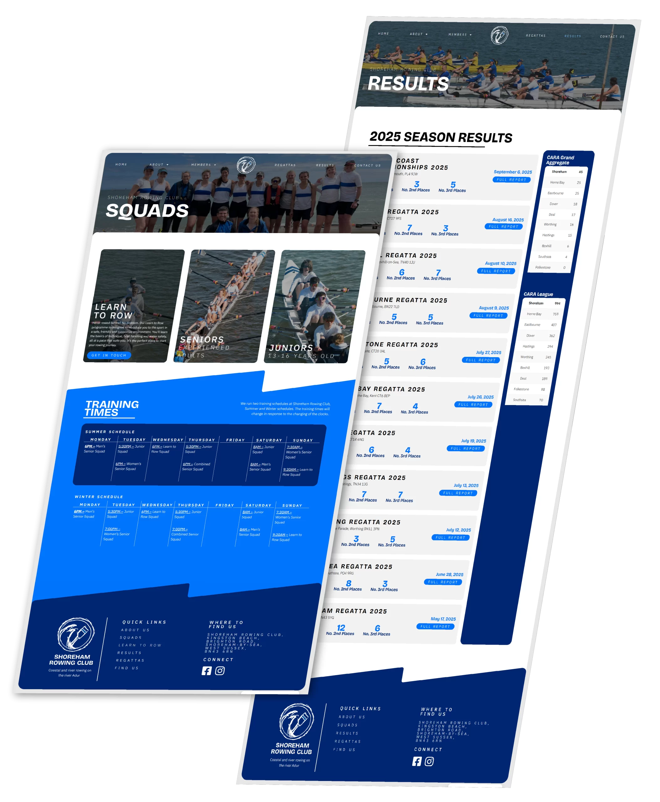 Shoreham Rowing Club have grown significantly in recent years, growing membership to over 100 active members. However, their digital presence had not been addressed since 2015, resulting in a very out-dated website not showing the true success and highlights of the clubs recent championship reign.